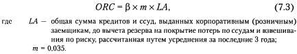 Единственное отличие альтернативного подхода заключается в том, что для двух направлений деятельности — розничного и коммерческого банковского обслуживания — в качестве показателя подверженности риску используется не валовой доход, а объем кредитов, который корректируется на определенный коэффициент (т). Размер капитала, резервируемого под операционные риски этих двух видов деятельности, рассчитывается следующим образом: