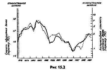 Страница 23 из 33 Скорость обращения денег (параметр М2) и альтернативная стоимость экономика вернется в состояние равновесия. Итак, мы видим, что в рамках допущений классической количественной теории денег и цен стабильность спроса на деньги подразумевает жесткую взаимосвязь между денежной массой и уровнем цен. Альтернативная стоимось хранения денег (рассматриваемых в рамках денежного параметра М2) равна разности между средней нормой процента, выплачиваемой по таким видам помещения денежных средств, и типичной нормой процента, выплачиваемой, например, по трехмесячным векселям Государственного Казначейства США. Как показывает график, приведенный на этом рисунке, изменения скорости обращения денег (параметр М2), тесно связаны с альтернативной стоимостью их хранения в этом виде. Отсюда можно сделать вывод, что в целом спрос на деньги (параметр М2) отмечается относительной стабильностью. ![]() |